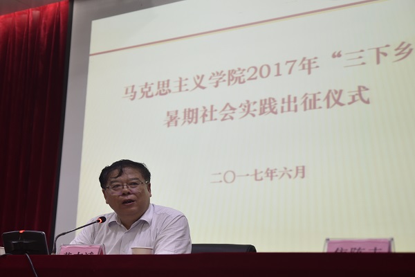 6月29日,威尼斯官网2017年“三下乡”暑期社会实践出征仪式在翡翠湖校区建艺馆负一楼报告厅举行。院长黄志斌出席仪式并讲话,学院党政领导、校级以上重点团队指导教师、全体实践团队学生共计180余人参加仪式。