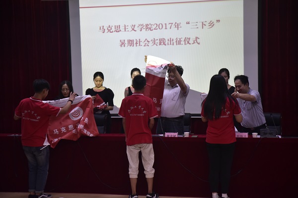 仪式上,学院党政领导分别为省级、校级重点团队授旗。仪式后,辅导员余琛和暑期社会实践优秀学生代表徐东辉就安全、宣传、成果提升等工作展开了专题培训。