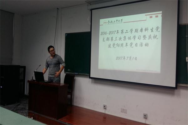 7月1日晚,威尼斯官网本科生一二三年级党支部第三次集体学习暨庆祝建党96周年党日活动在建筑艺术馆举行。党支部书记和本学期新发展党员参加了此次活动。 首先,本学期新发展党员在支部书记王吉萌的带领下庄严宣誓,重温了入党誓词;王吉萌通过对各种图片和影像资料的解读对入党誓词以及入党仪式的发展历程进行了深入浅出的讲解,加深了新发展党员的组织意识。 随后,全体党员在王吉萌的带领下对新华社社论《永葆共产党人的奋斗精神》开展了认真的学习。在理论学习结束后,全体党员还集中观看了反腐教育片《永远在路上》,再次坚定了“打铁还需自身硬”的理想信念。在集体学习之后,全体党员围绕“永葆共产党人的奋斗精神”进行了讨论发言。朱悦从习近平总书记在香港的讲话谈起,阐述了中国共产党人“一国两制”伟大构想的创造性精神;徐东辉从参加井冈山培训的见闻感受谈起,表达了对革命传统精神的传承之志;崔兴红则分享了一名新党员对党组织的认识与加入组织的自豪心情。 本科生新进党员认真参加了第一次组织生活,以昂扬饱满的态度庆祝中国共产党的96岁生日。相信,通过此次活动能够使本学期新发展的党员们进一步坚定理想信念,规范组织生活,成长为一名合格的共产党员。 (图文/徐东辉) |