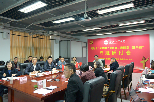 研讨会展示了我校在党的十九大精神“进教案、进课堂、进头脑”方面所取得的初步成果。大家一致认为,推进十九大精神“进教案、进课堂、进头脑”,关键是学习并深刻把握十九大精神的精髓要义;结合每门思想政治理论课的教学内容和特点,找准课程与十九大精神的联系点和融入点;通过课内课外、线上线下等多种方式,面向学生深入讲解,让学生听得懂、记得住、能领会。