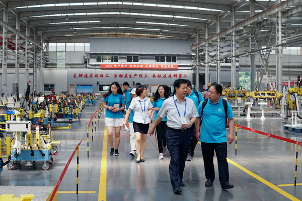 7月16日,实践团队来到北汽福田诸城汽车厂。在企业党委书记王志华等负责人的生动讲解下,师生们参观了超级卡车智能工厂高度自动化的柔性生产线,对福田汽车智能制造2025“一网三智能”战略(即车联网、智能产品、智能工厂、智能管理),以及企业推行产品个性化定制服务、实施清洁环保生产、践行“精益制造、精益求精”企业文化等方面,有了更为深入的理解。