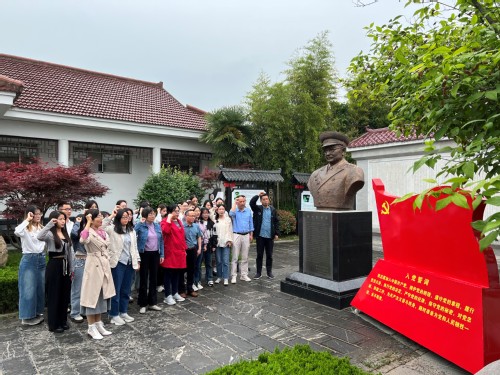 随后,师生党员来到李克农故居,走进故居,首先映入眼帘的是门匾上由杨尚昆同志题写的“李克农故居”五个大字。全体党员在李克农将军铜像前缅怀革命先辈,重温入党誓词。在李克农生平事迹陈列馆,大量珍贵史料向我们详实地展示了李克农将军传奇的人生经历和独特的个人魅力。作为1955年授予上将军衔的52名将军中唯一一名没有领过兵、打过仗的将军,李克农将军在隐蔽战线上做出了卓越的贡献。正是以李克农将军为代表的革命前辈,长期坚守在情报和保卫等特殊战线上,国家安全才得以保障,革命火种才能够延续。将军把毕生精力献给了中国人民解放事业和社会主义建设事业,展现了一名共产党员的优秀品质。