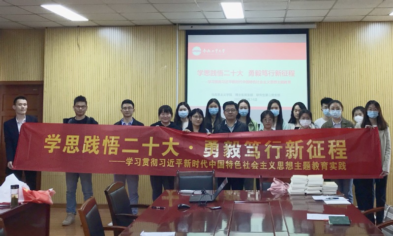 为深入学习贯彻党的二十大精神,落实学习贯彻习近平新时代中国特色社会主义思想主题教育的工作部署和要求,524日下午,博士生党支部、马克思主义理论研究生第二党支部在翡翠湖校区学工部第一会议室联合开展了“学思践悟二十大·勇毅笃行新征程”主题党日活动。
